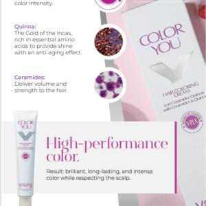 Dzięki połączeniu tych składników, farba Young Color You Professional nie tylko zapewnia trwały i intensywny kolor, ale także pielęgnuje włosy od wewnątrz oraz nie podrażnia skóry głowy. Odkryj tajemnicę pięknych i zdrowych włosów z farbą Young Color You Professional!